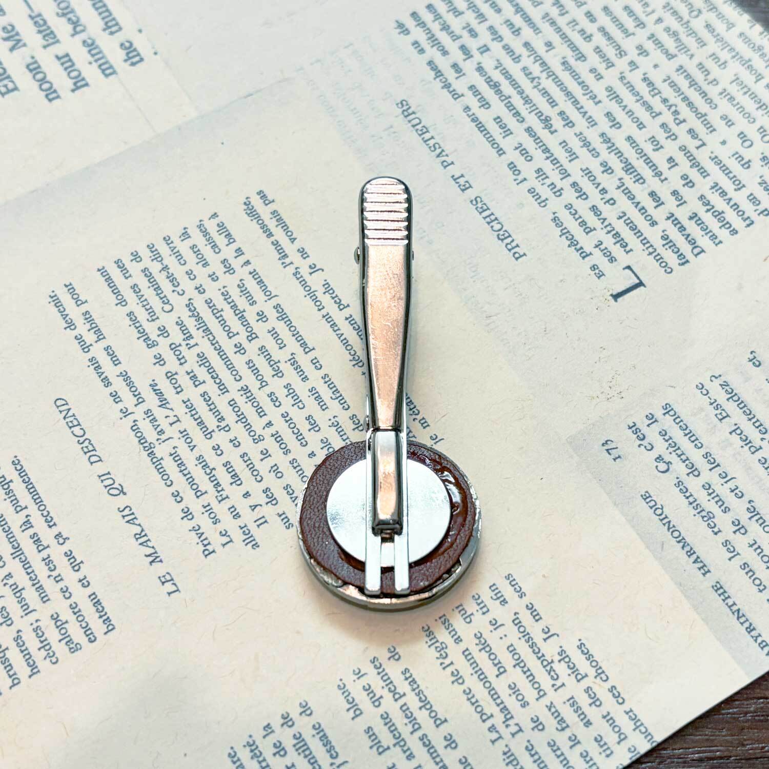 古い時計のムーブメント(動力機構)を丸ごとタイピンにあしらいました。