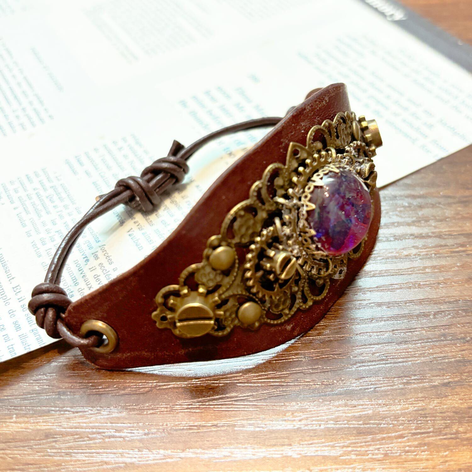竜玉のブレスレット【スチームパンク風】ドラゴンズブレスの腕輪、サイズ調節可能